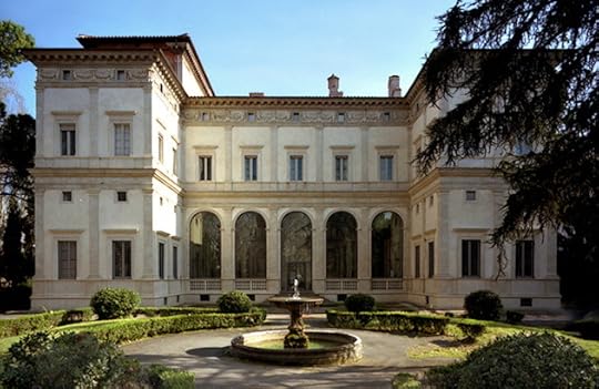 visiting the small but stunningly frescoed Oratorio del Gonfalone, and going to the beautiful Villa Farnesina in Trastevere (above) which has frescoes by (among others) Raphael. Even the exhibition wasn’t busy, and we were the only visitors to the Oratorio (used for evening concerts and other events — you knock on a door in the street behind, and we were shown it by the President of the confraternity). All wonderful.