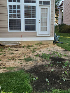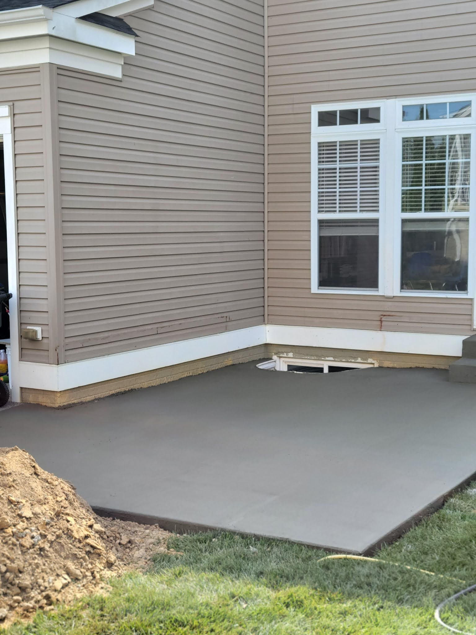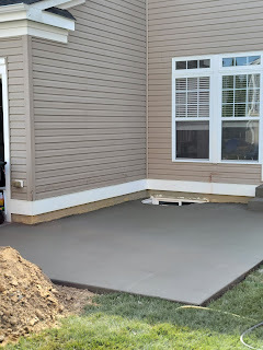 We tore down our deck way back in May (which you can read about in this post), and last week we filled the empty space in our backyard with a beautiful patio. My whole family (including Juniper) gathered at the windows to watch the workmen pour the concrete and smooth it out. They did a great job! We're all very excited to be able to play/eat/read out there again.