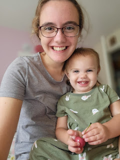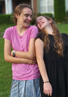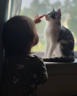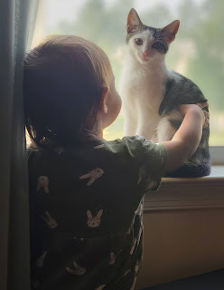 As we underwent the process of adopting Juniper, Mom remarked that it felt like we were getting another kid. The rest of us laughed, thinking she was just referring to all the paperwork she had to do and the huge commitment we were making (i.e., that line "till death do you part"). But no. We brought Juniper home, and she quickly settled in so that she did become like "one of the kids." One-year-old Ruby loves to chase her (and take her toys 😂). Yesterday morning I found Juniper hanging over the open toilet (with her head in the bowl) and Ruby standing by, watching. My instant reaction was "Eww, gross!" Later, though, the scene entered my mind again, and I had to laugh. I think our toilet lids will stay down from now on.
