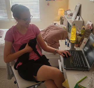 Okay, while Heidi is continuing to sleep comfortably on my lap, I'll finish up this post by listing off a few other important events that have taken place in the last two weeks. We moved Connor into college, and he's doing really well, which we're glad for, although we all miss him a lot. He's been able to call us several times, however, and I chatted with him for almost an hour and a half one night (it was definitely worth staying up till a quarter to midnight 😊)I commenced taking dual enrollment college classes through Regent University on Monday, August 23. It was a little hectic at the beginning, with orientation quizzes and deadlines I hadn't even been aware of, among other things, but I'm feeling better about it now. All my assignments for the week are turned in, right on time. (yay!)