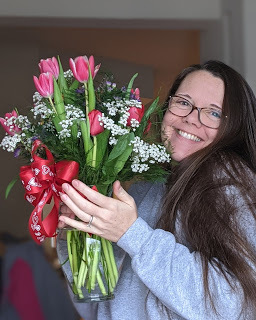 We celebrated Valentine's Day with dairy-free cinnamon rolls (that Mom made) and candy and flowers (from Grandma). It was awesome! 🤗
