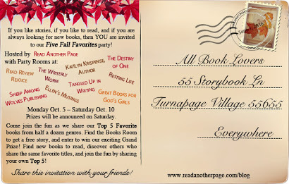 Ahh, exciting news, m'friends! *happy dance* For the first time EVER, I've signed up to participate in Rebekah Morris and Sarah Holman's amazing "Five Fall Favorites" blog party! The event starts in early October, so you'd best prepare yourselves to be drenched in a ton of posts, book recommendations, some reviews, aaaaaaand . . . a giveaway with a totally awesome grand prize basket. :D