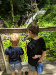 Our first trip was to Kent Falls in Kent, CT. Kent Falls is a gorgeous State Park in Western CT that has multiple levels of waterfalls. There are stairs all the way up, with look-outs so you can stop along the way to enjoy. There is so much green and it’s soothing to listen to the rushing falls as you climb up to see each one of them.