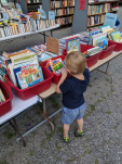 When we finished enjoying nature – and getting tired climbing up and down – we drove into the center of Kent and ran into a library book sale! It was so much fun to peruse all the books and pick out some new ones to enjoy. I loved seeing the boys really get into looking at books (they certainly take after me – yes!). We also got ice cream, which was perfect on a hot day.
