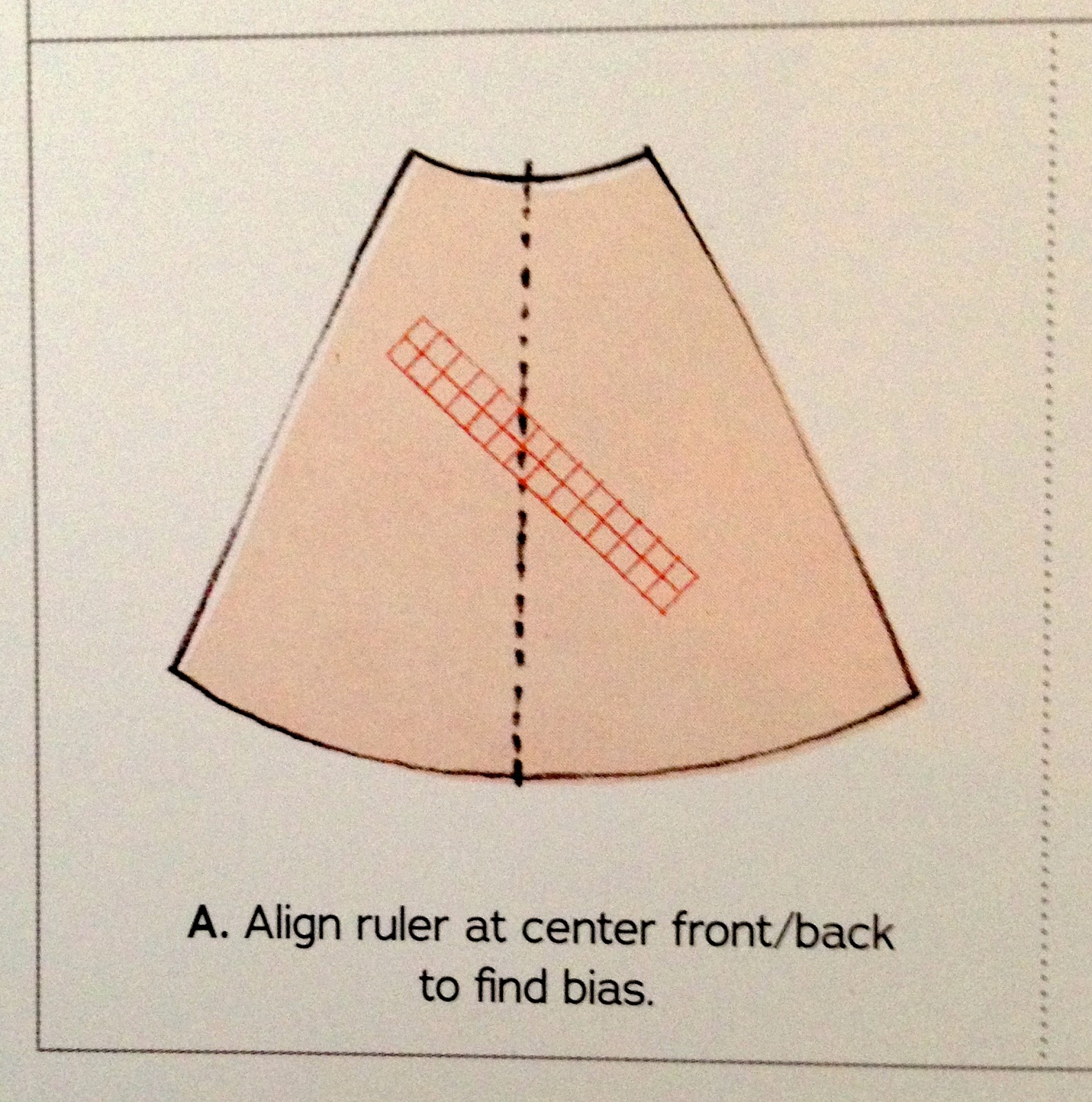 By Sun Young Park, from Gertie Sews Vintage CasualPlace your tape along the 45 degree angle, starting at one upper corner of the skirt.