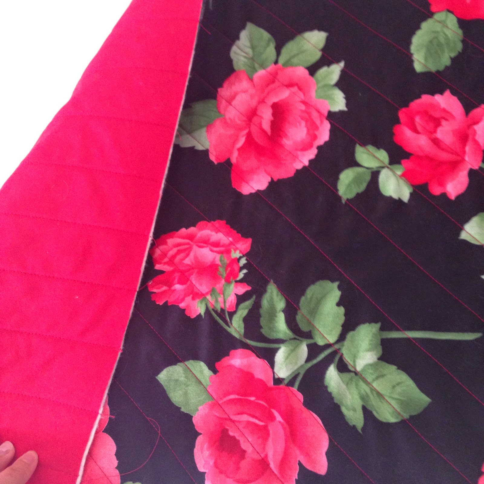 Is it okay to have a favorite fabric in your own collection? Because mine might be this one. Huge roses in lovely pink and red tones on a black background. This is also a sateen. My next project is to make a half circle skirt in this for spring.