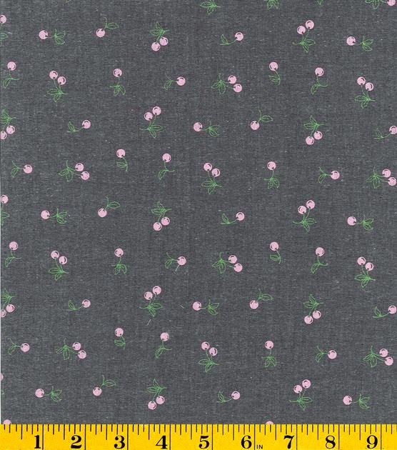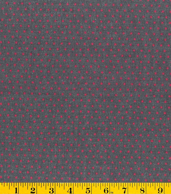Chambray Polka Dot PrintEmbroidered strawberries! This is on a medium weight ribbed-texture cotton.
