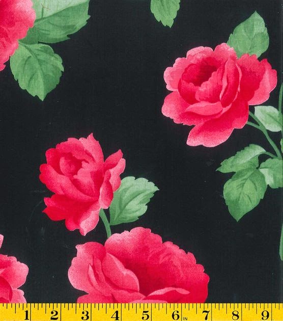 Sateen Rose in Black It also comes in coral and yellow on cotton poplin! I want to make a HUGE full-skirted dress in this to go flouncing about in.