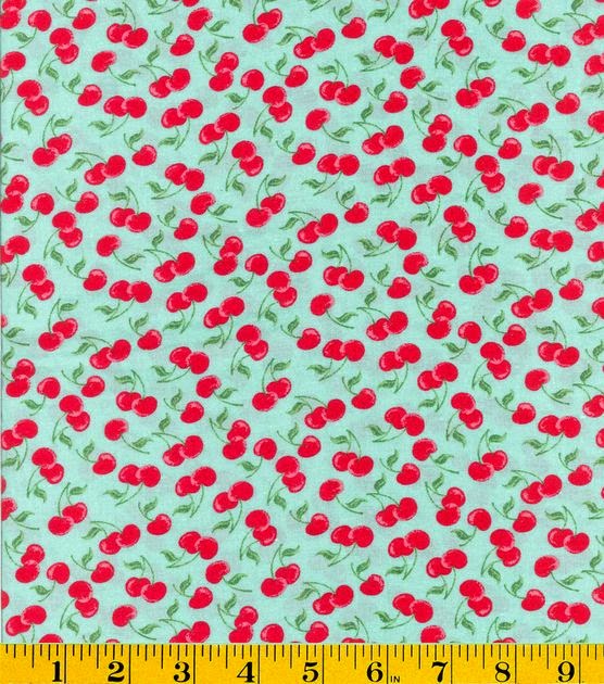 Cherries on Aqua Rayon ChallisAnd on a white background on crisp cotton poplin.
