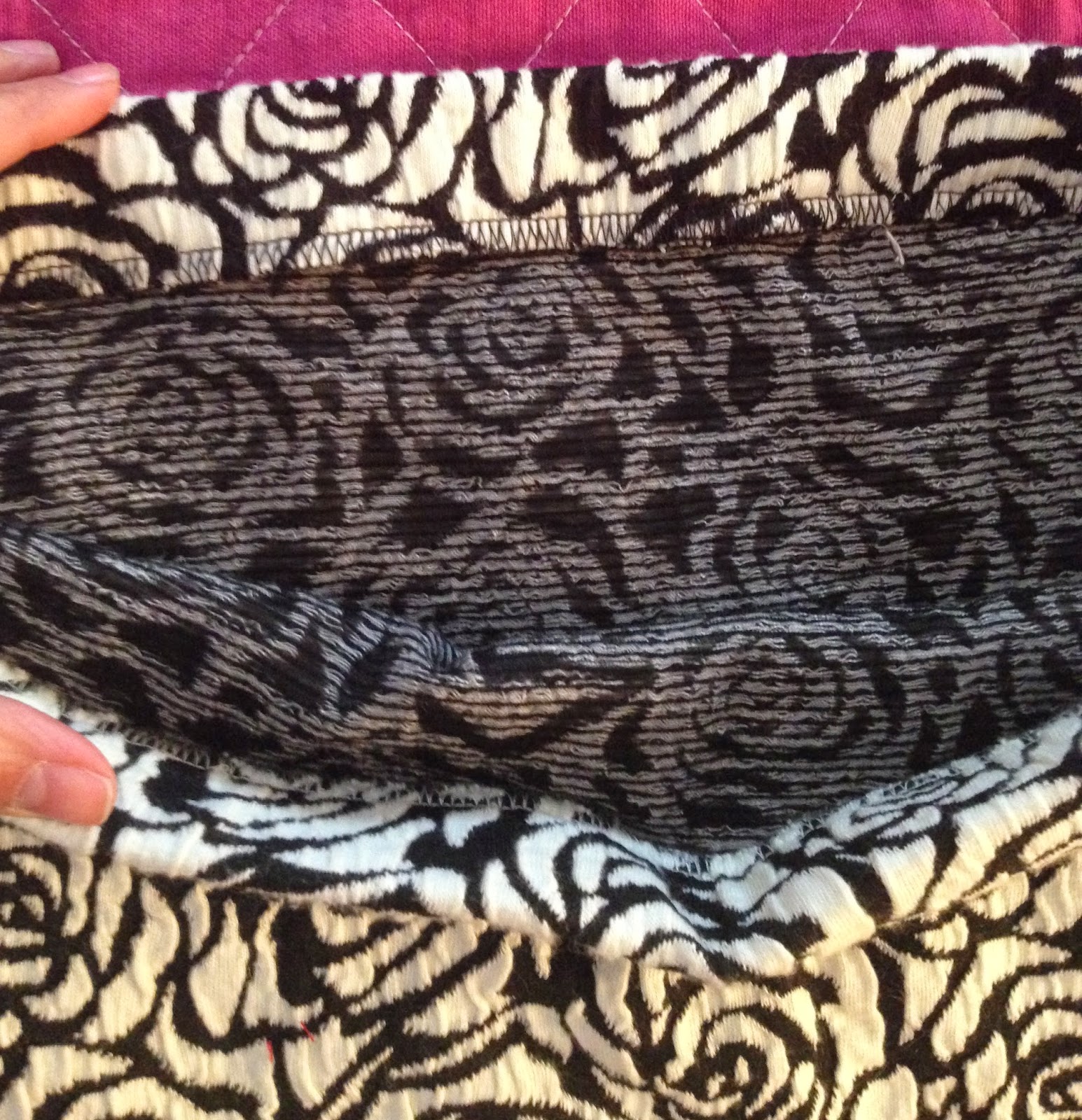 For that skirt, I used a layer of cotton and a layer of flannel and then outsourced the quilting to my mom. Here's a view of the inside.