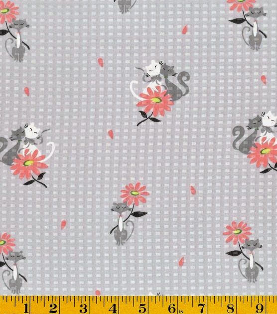 Cherries on White Cotton PoplinAnother favorite: KITTIES. This is inspired by a 40s novelty print and is done on a poly chiffon with a sheer windowpane background. I was hesitant about polyester, but when I felt this one I was so in love! It has a really nice hand and feel to it. (Also, the grey kitty is my Henry. Obviously.) I'm going to be making the "40s-Style Blouse" from Gertie Sews Vintage Casual in this print. More to come.
