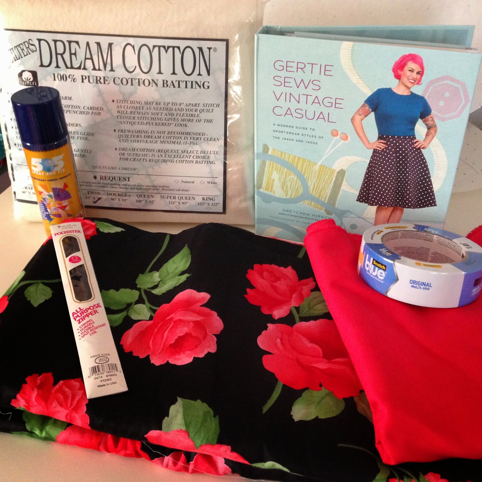I decided to try a more traditional quilting configuration, using batting between two layers of fabric. So the first thing I did was gather my supplies:
