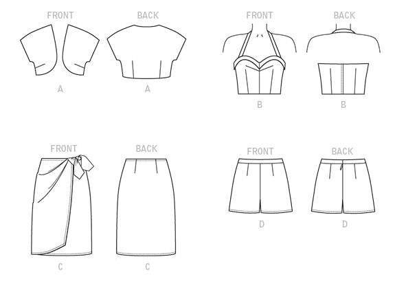 Lastly, here's B6354, a collection of four tiki-inspired resort separates that can be worn layered or on their own.