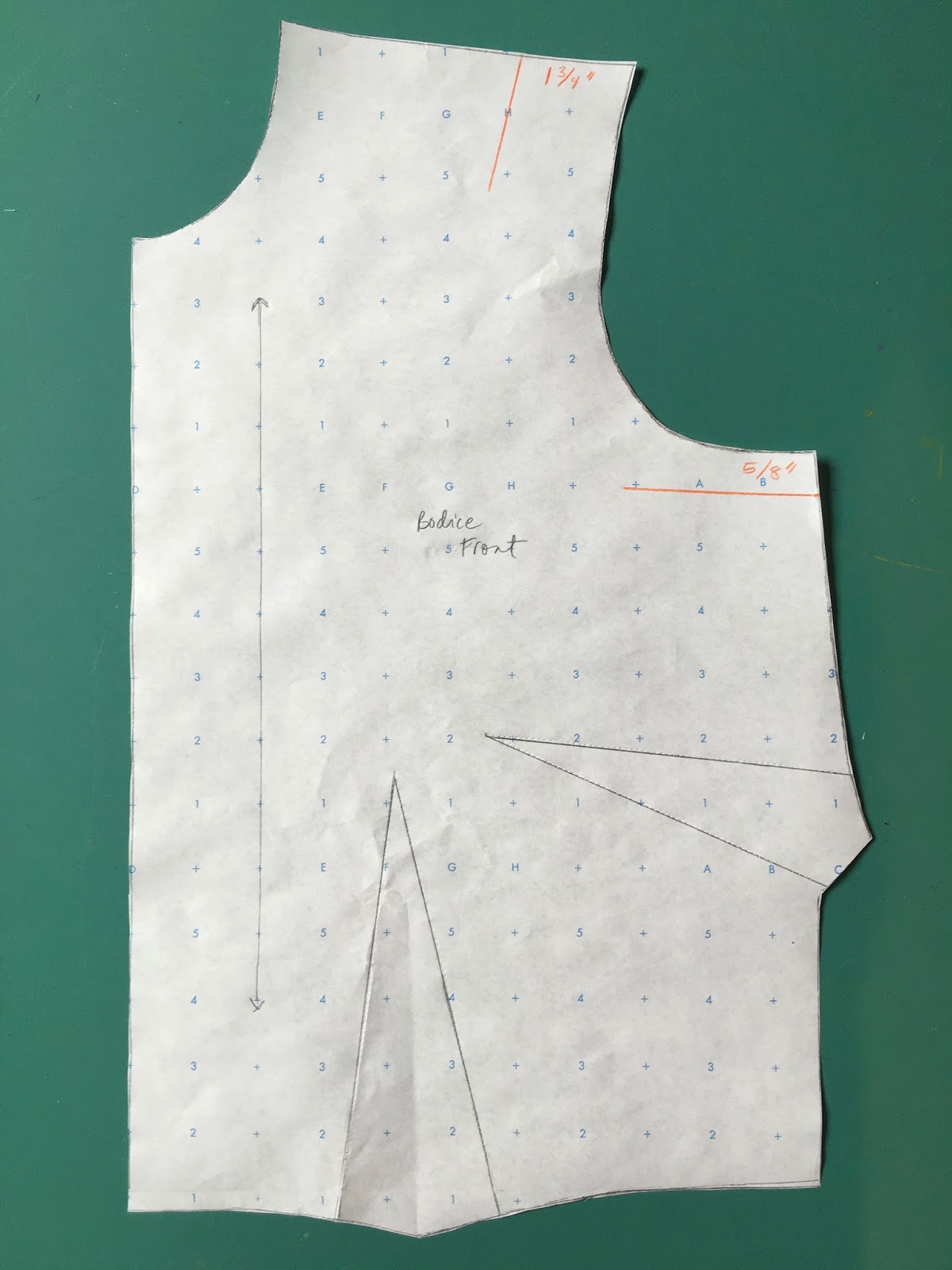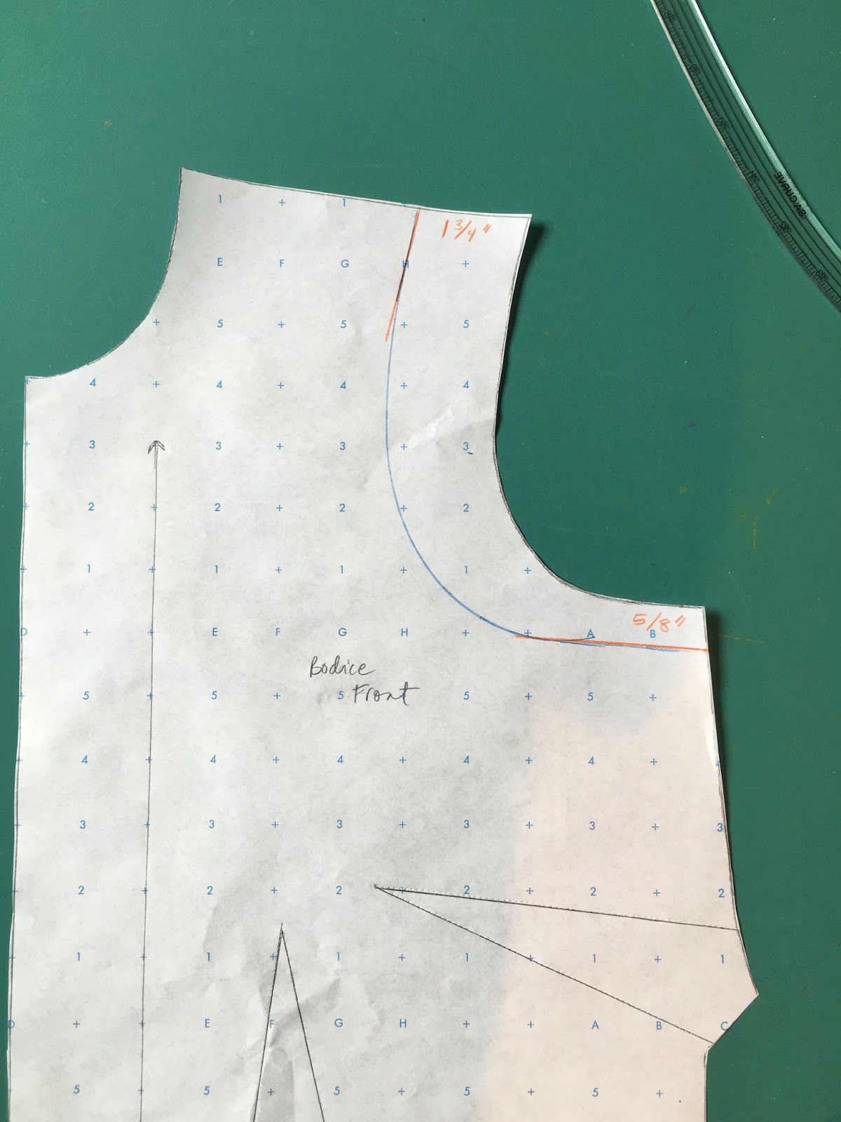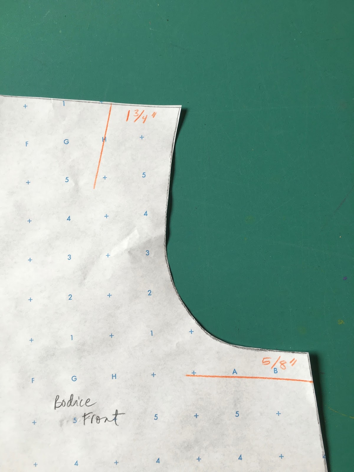 I did this by making marks at 1-3/4" in from the shoulder (where the sleeve would connect), and then 5/8" under the armhole.
