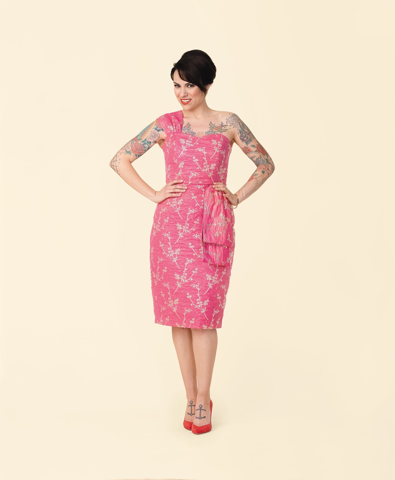 But look at the bust pleats and the pink illustration, and do you see the shades of Marilyn?