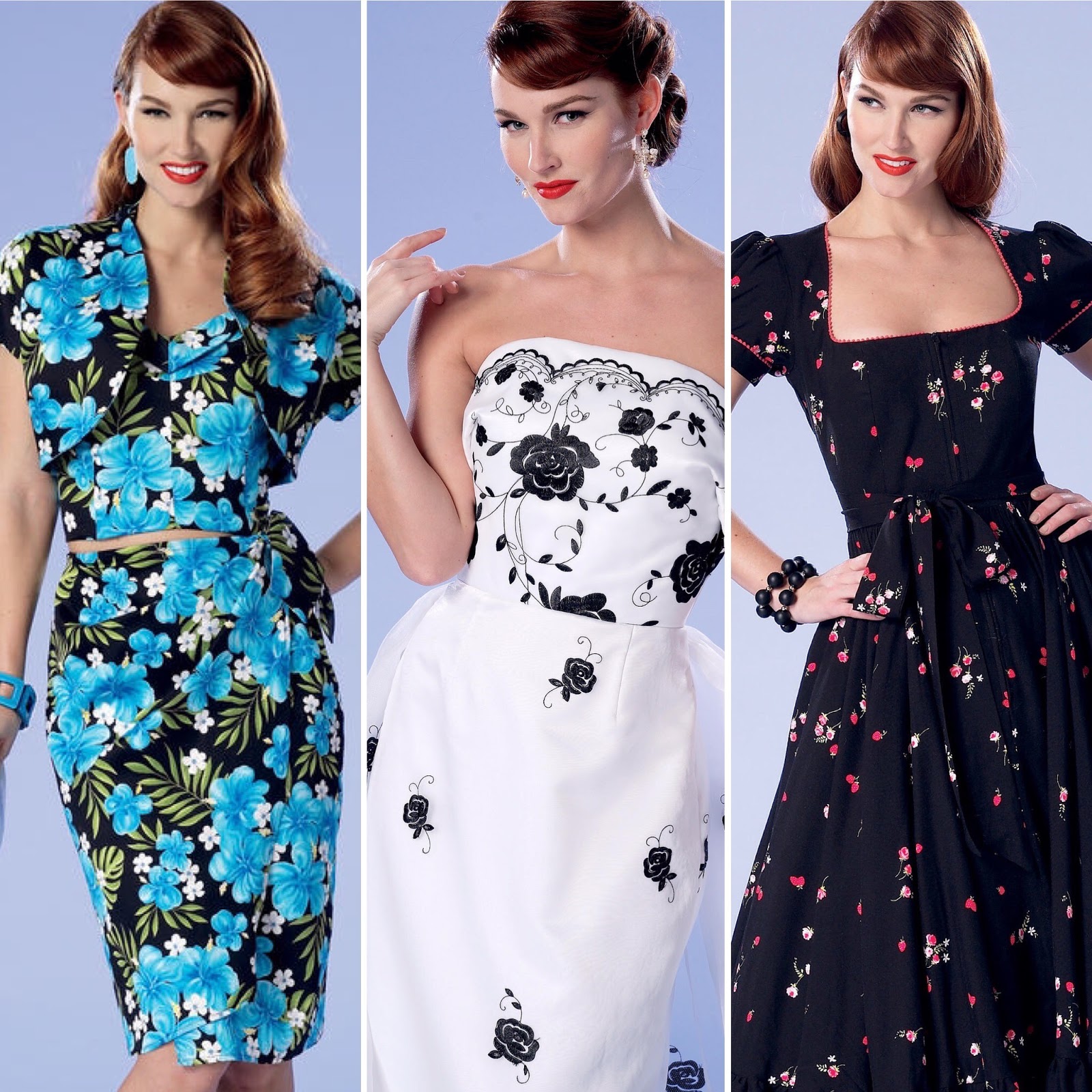 I have three new patterns out in my Butterick line for summer! An evening gown, a collection of Hawaiian resort separates, and a dirndl-inspired dress.