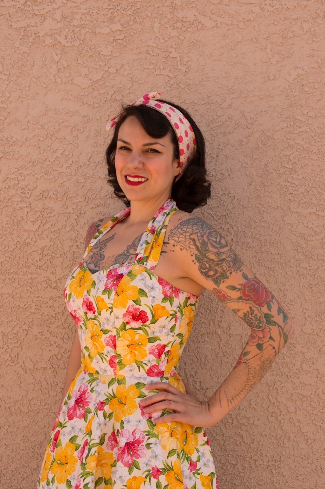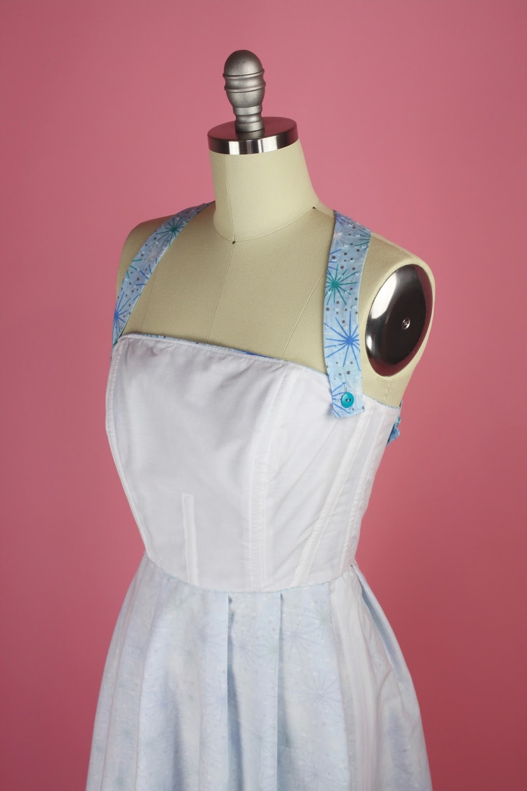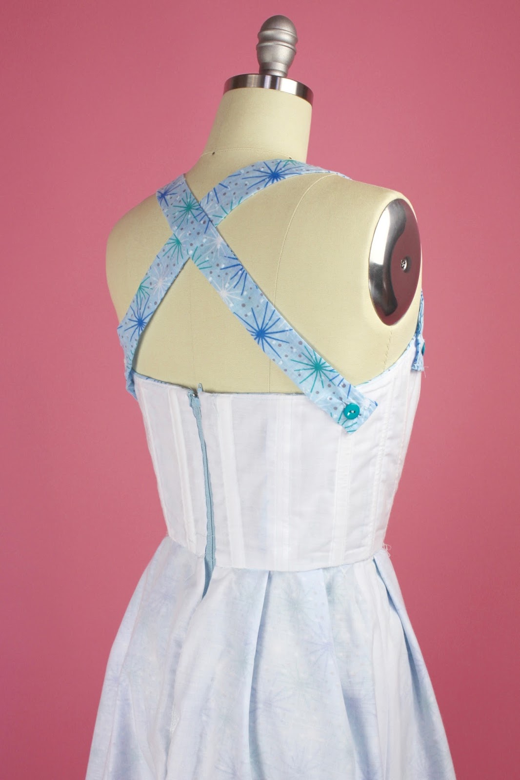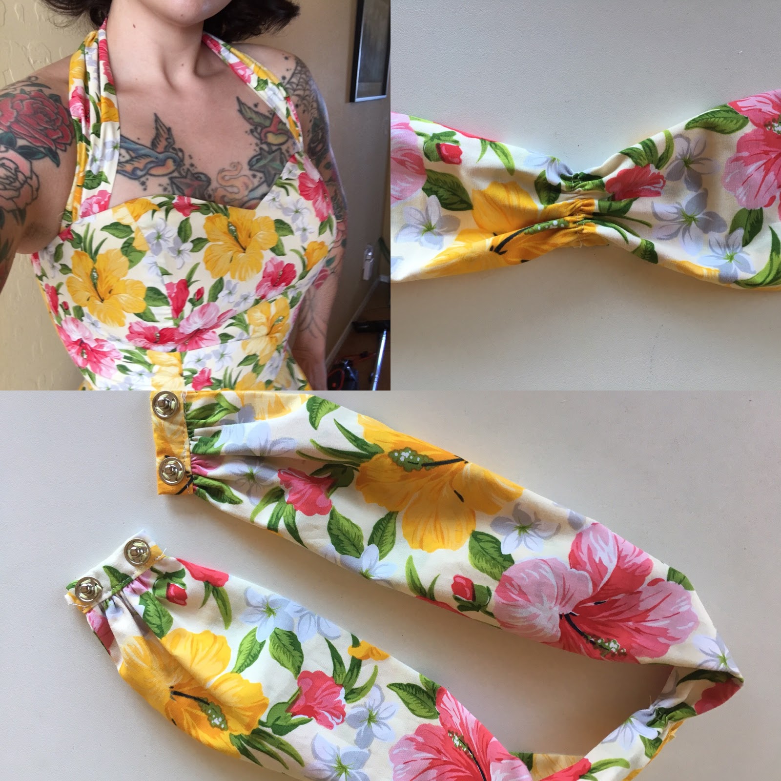 I had always intended this dress to have some sort of halter strap, as that's just something I associate with Hawaiian sundresses. So I made this easy gathered strap that snaps in.