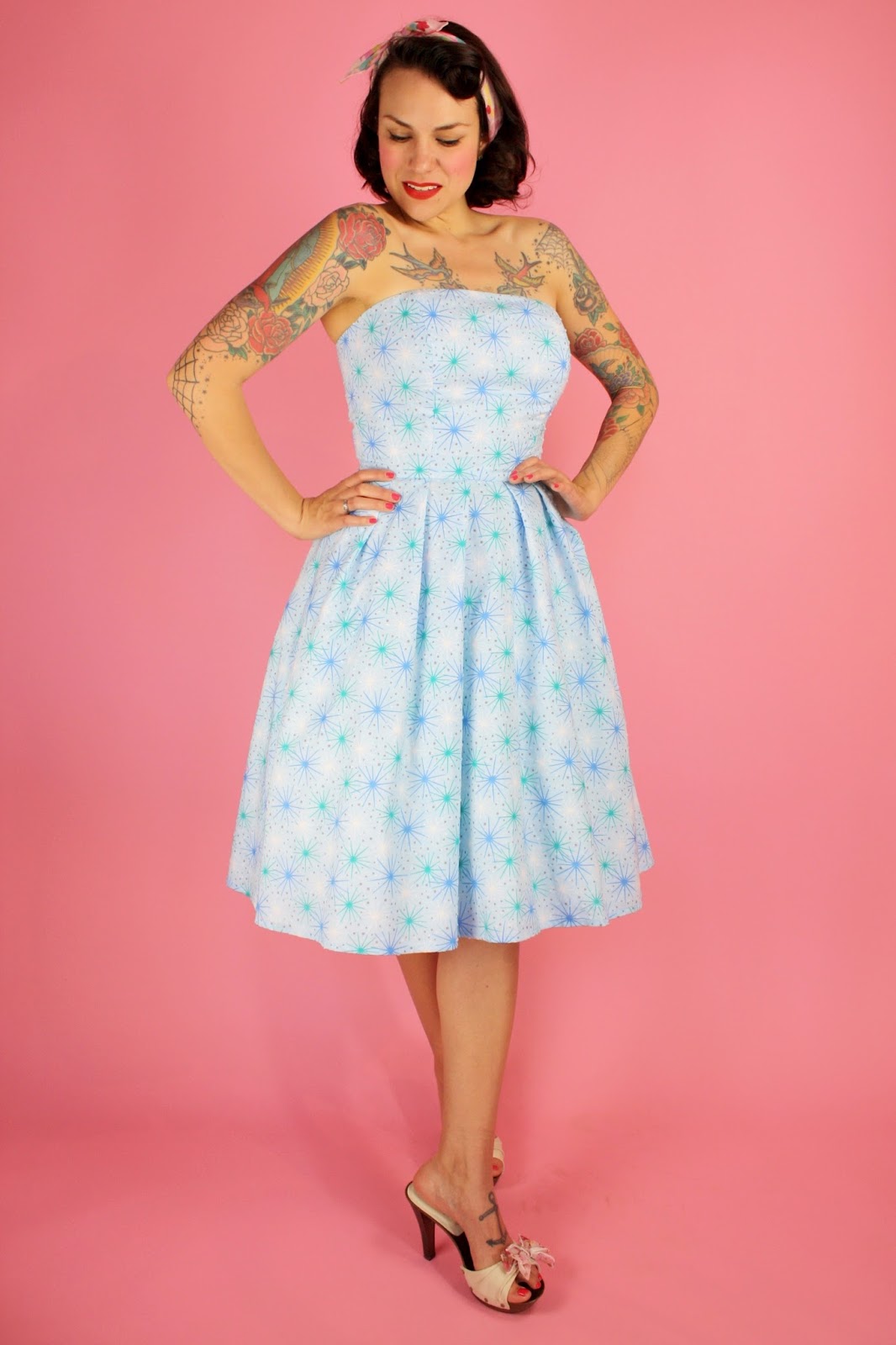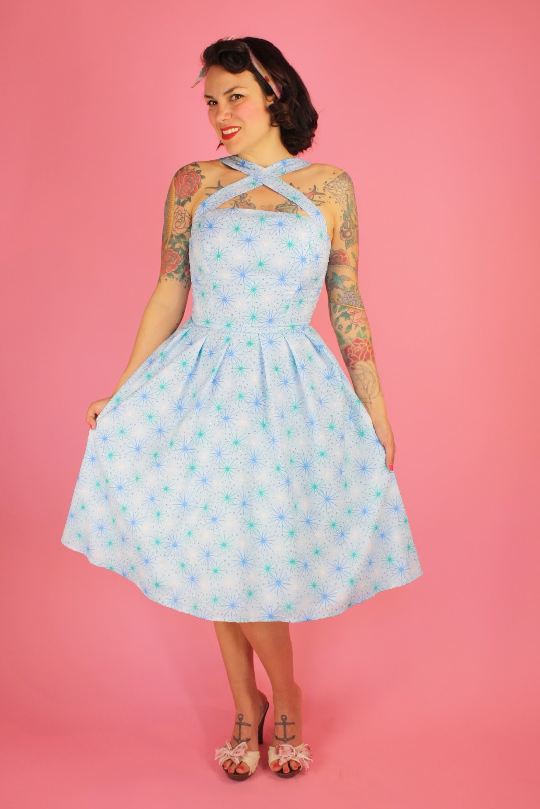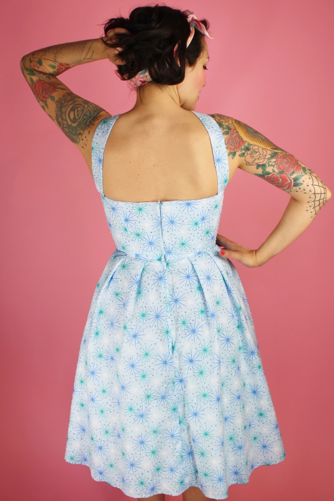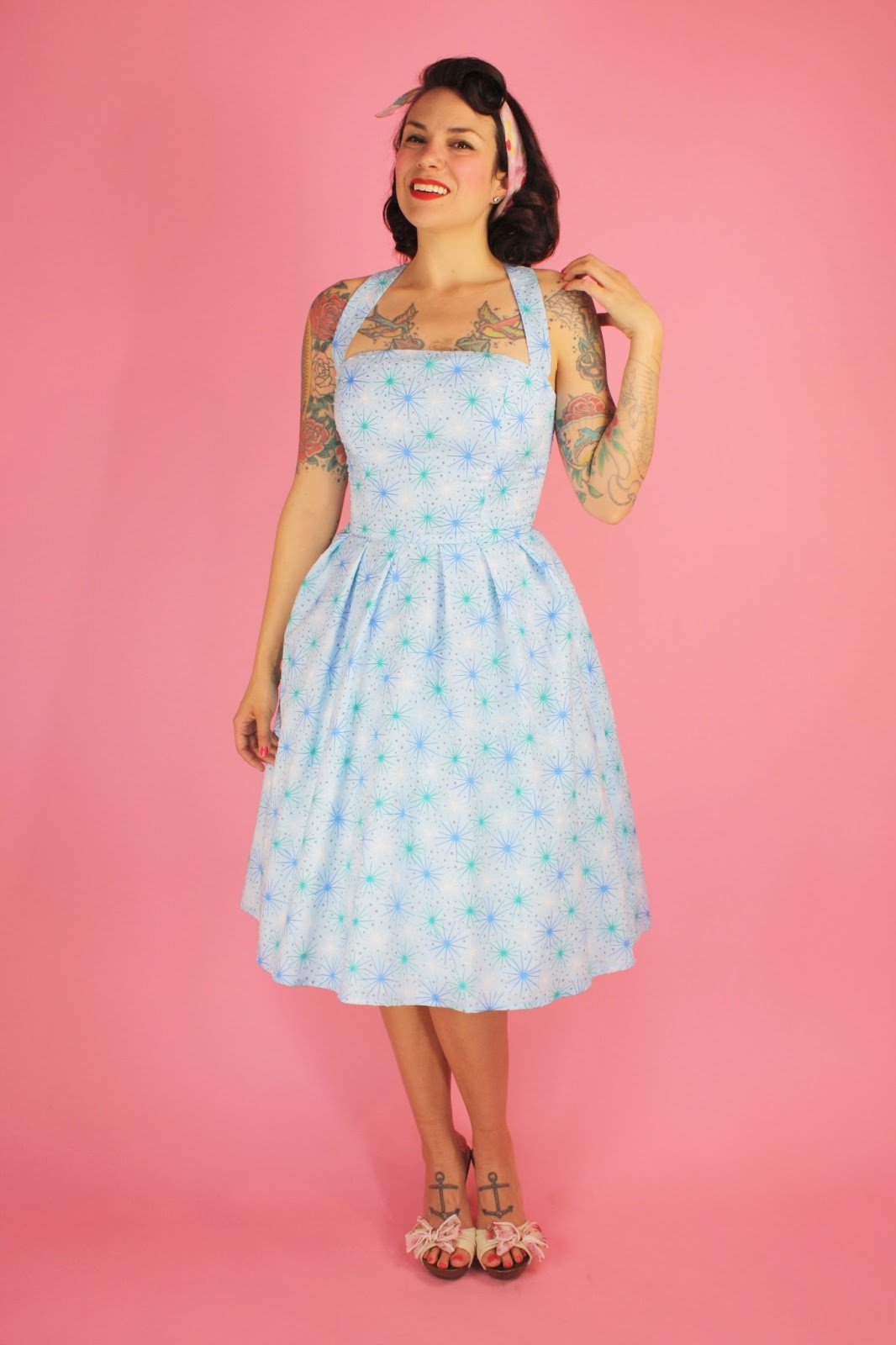 Atomic Starburst SundressAlso in the Swiss Dot category is this floral stripe, inspired by Horrockses dresses of the '40s and '50s.