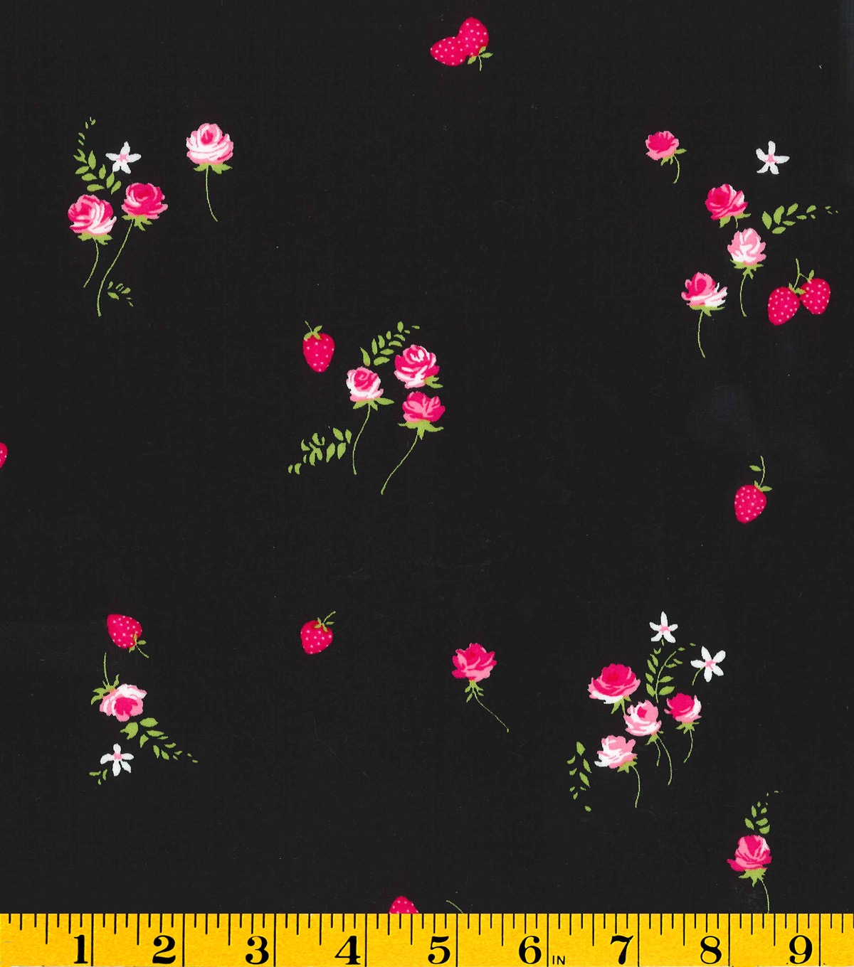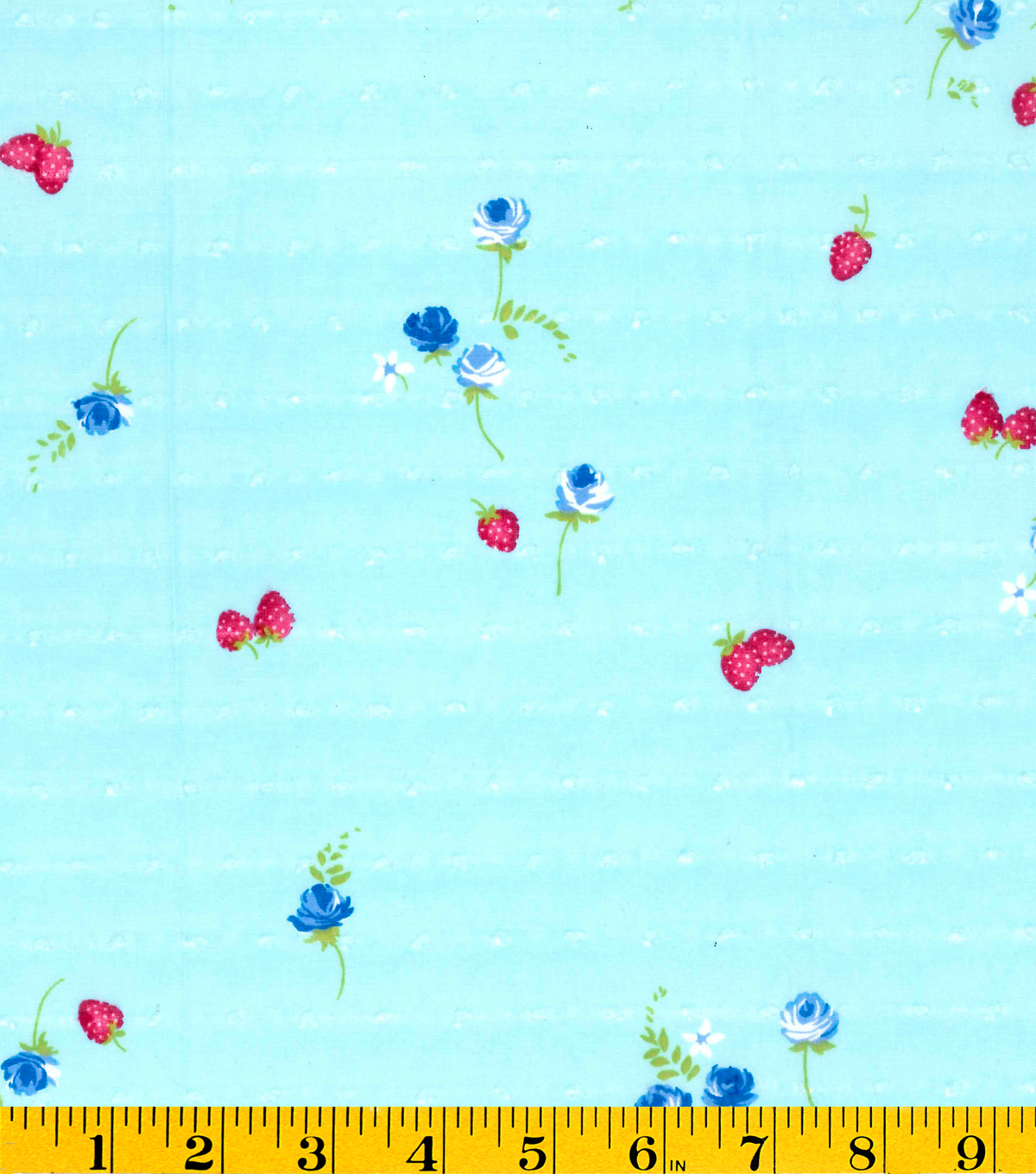 Lemons on Blue Cotton LawnAlso in the fruity category is this small print with roses and strawberries.