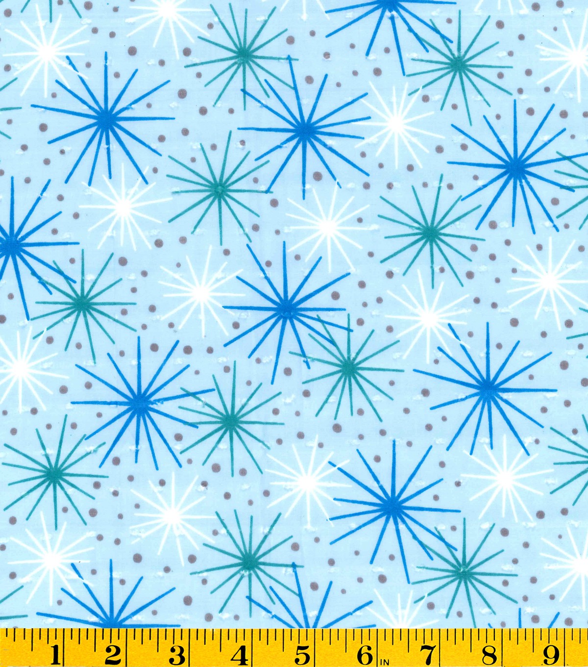 Dot to Dot on Ivory Cotton Lawn Atomic Starbursts! So Jetsons! And it's on a textured Swiss Dot Background.