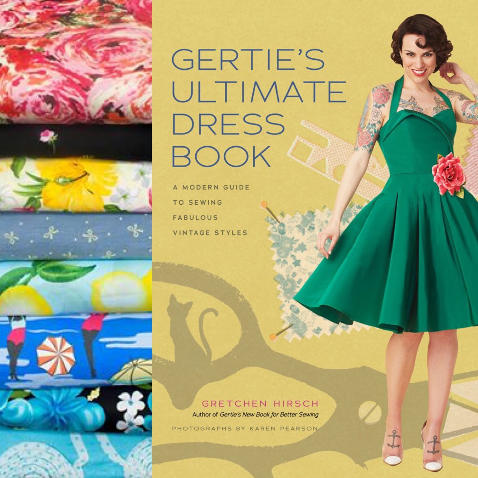 It's finally here! The publication day of Gertie's Ultimate Dress Book. It's hard to believe it was a year ago that we were photographing the 25 dresses I had madly sewed all winter. I have to say, I'm really proud of this one. It also nicely coincides with the release of a whole new collection of Gertie by Gretchen Hirsch Fabrics at Jo-Ann Fabric and Craft Stores. To celebrate, we're giving away three sets of a signed book plus a fabric bundle (which consists of two different 2-3 yard cuts of fabric). That should get you started on a dressmaking frenzy of your own!