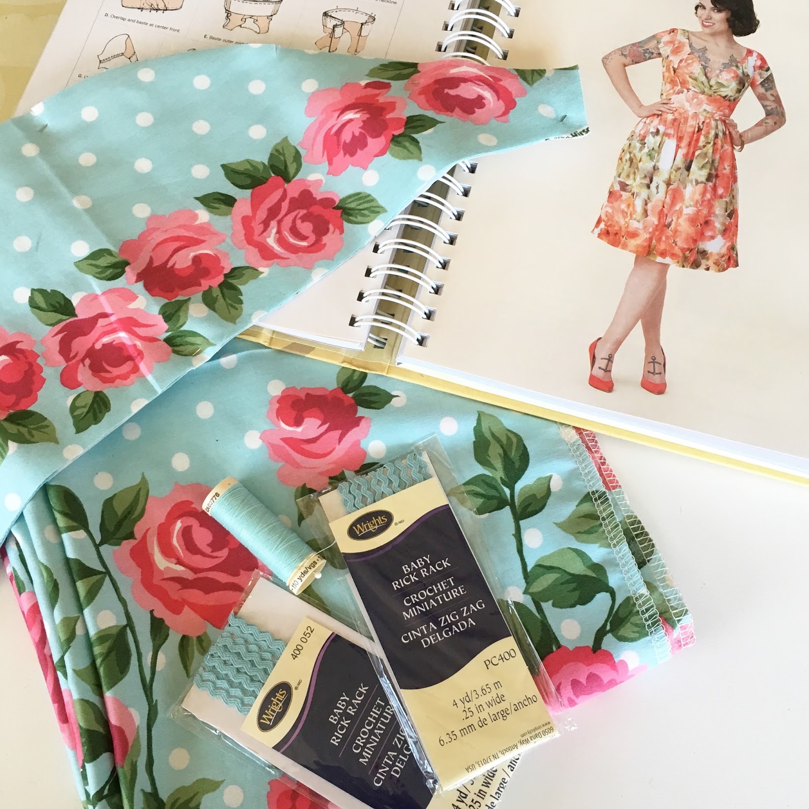 I like the feel of this dress so much that I want to do something similar with the other chambrays in the collection. There's a pink rose print.