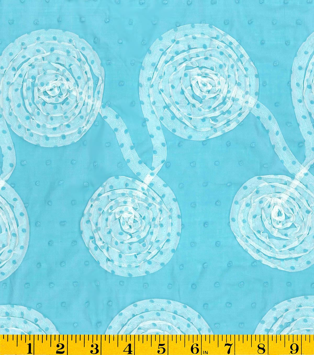 Mint Dots on Chambray Now, the embroidered cottons. These have polka dot pinwheel swirls on a Swiss dot background.