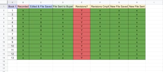 The spreadsheet for tracking my overall progress and estimating my time to completion.This saved me halfway through the project because I realized I wasn’t working fast enough. To catch up, I had to take a day to record three books in a single day. Something I don’t recommend because I had to rest my voice for two days after that. Thankfully, I had plenty of editing to keep me busy during that time.