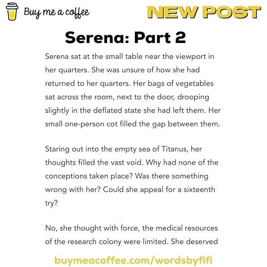 Part 2 of the short story “Serena” is now available on my Buy Me A Coffee page thanks to some generous sponsors. Link below and in my IG bio.