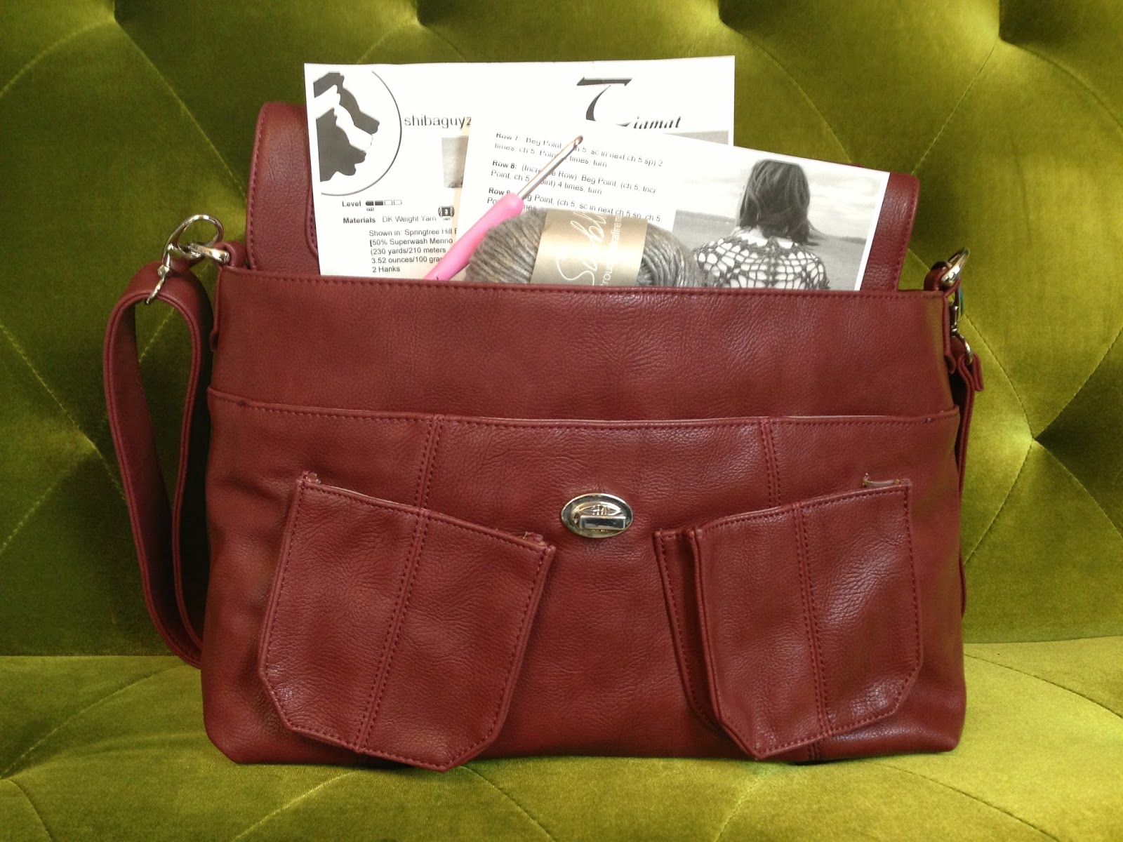 Last January Jordana Paige sent me the latest addition to her fantastic line of knitting bags, this one called: Cezanne. I was so enamored with the on-trend oxblood red, the plentiful pocket arrangement and the accessory pouches that I decided to honor Cezanne by filling it up with supplies for a non-work related project. Frivolous stitching is not something I see much of these days, but this bag deserved the honor of holding what to me is one of life's most precious things: the tools for free-time enjoyment.