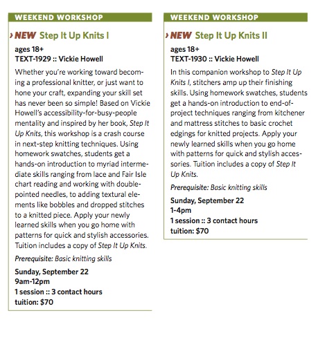 I'm honored to be teaching two workshops in September at the renown, Rhode Island School of Design (RISD)! As part of their Continuing Education program in Hand Knitting Design, they've invited me to teach next level techniques from my book, Step It Up Knits. See above for full description of the classes.