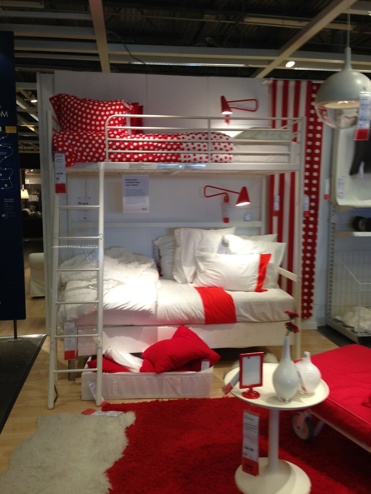 One of the rooms doubled as both dining and craft room. I love the fabrics hanging on a garment rack and the ruler painted on the wall! The most adorable thing though, is the sewing machine they now sell. It's compact with a decent amount of stitches, and affordably priced. This would be a great starter machine for any DIY-er.