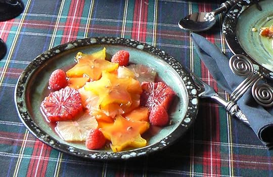 papaya, and blood orangesStarfruit slicesSome raspberries