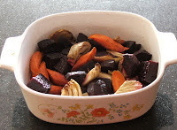 . And here's a shiny recipe, just in case you're hungry.ROASTED MAPLE VEGGIESAbout 5 carrots, peeled and sliced on the diagonalAbout 3 good sized beets, peeled and sliced into wedgesTwo fennel bulbs, fronds removed, and bulb cut into wedgesabout a quarter cup of REALLY GOOD extra virgin olive oilabout a quarter cup of REALLY GOOD and very REAL maple syrup (We use the dark kind)Salt and pepper, applied liberallyIf you want, you can add other veggies - potatoes or parsnips are good - because you know the rule. PLAY WITH YOUR FOOD!