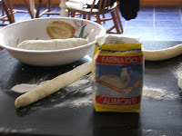 Divide the dough into two or three parts, and roll each part into a long rope, about an inch thick. Use flour to keep it from sticking to your work surface. Cut the ropes into 1/2 inch pieces and put them on a well floured baking sheet, ONLY IN ONE LAYER!