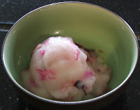 When the ingredients are really really cold, brrr, like they live in Nunavut Territory, put them in your ice cream maker, according to its directions. As it begins to turn about, add the rose petals. Try different colors, different kinds, because you know the rule: PLAY WITH YOUR FLOWER FOOD! Let the machine do its thing while you decide what to do with the rest of the champagne. Drinking it is an option. If you drink enough, you’ll enjoy watching the transformation in your ice cream maker, and how PRETTY it is.