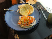 This artichoke soup was a surprise to me, because it had the creamy goodness necessary to qualify as comfort food, and a brightness that brings light to the angst ridden soul. It’s familiar enough and strange enough to help you negotiate your insecurities, when you find you’re off your own known emotional map.