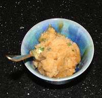 I loved the taste of this, and the way it looked. The Shisho shimmers like fairy wings. I wasn’t sure about the texture, because the shisho was a little stretchy to get through. Of course, I was eating it with my fingers, because I was raised by wolves. If I sat at a table and used a knife and fork it might have been easier to cut the shisho properly.