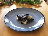 Pretty pretty foodWrap a leaf of shisho around each piece of fish, poking the end of the stem through the leaf to make a little package. If you have leftover fish, either get more shisho leaves or use something just as interesting. I experimented with sorrell leaves as well, which created a really yummy lemony thing happening. You might try arugala, too, because you know the rule: PLAY WITH YOUR FOOD!Oil a small oven tray or dish and put the fish in it. Cook at 350 degrees for about 10-15 minutes. Remove, plate and eat. Admire the complexity of it all.