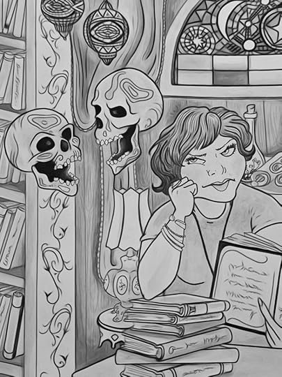 To celebrate the release of The Haunt on October 8th, we are having a color and caption contest. Color the illustration of Hecate and the talking skulls and give it a caption. The winner will receive a signed copy of the book and a $25 Amazon gift card.