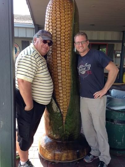 It was fascinating to be in Iowa during the 2nd Republican debate. I ate some Dutch letters, tilted at windmills, gave a reading of WEARING (I so wanted to rewrite as I was reading!), addressed the first year students who read EATING, and met my author friend Matthew Clemons to pose with a giant ear of corn–as one does in Iowa.