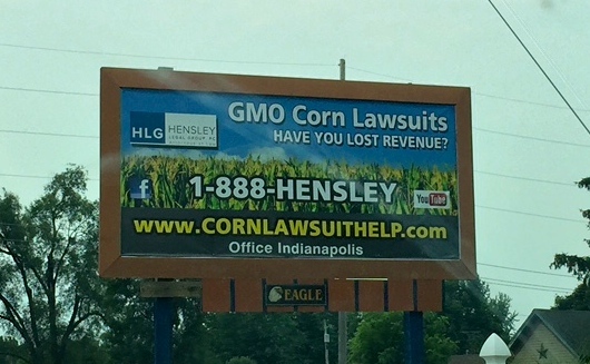At first I thought this might be farmers suing seed companies for contaminating (pollinating) their non-GMO corn with nearby GMO corn. This happens, but I was surprised there would be enough farmers in that situation to warrant a billboard. After some digging, I found that the lawsuit wasn’t recruiting from this small niche of farmers, but instead every single corn farmer.