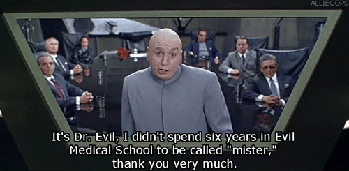 Actually, no one ever calls me that. A BA isn’t as noteworthy as, say, Dr. Evil’s PhD at Evil medical school.