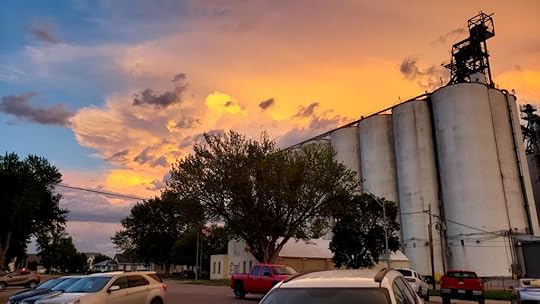 Nebraska is not without its thunder and hail storms. Here is the grain elevator in Morgan (Monroe) silhouetted by an impending thunder head that later poured causing local hail damage to crops and cars. Just a regular summer on the farm.