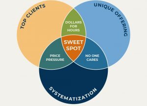When you have an identifiable Top Client Niche, a Unique Offering that your Top Clients want and need, and the Systems and Processes to deliver your Unique Offering to your Top Clients efficiently, effectively and profitably, you are in your Sweet Spot.