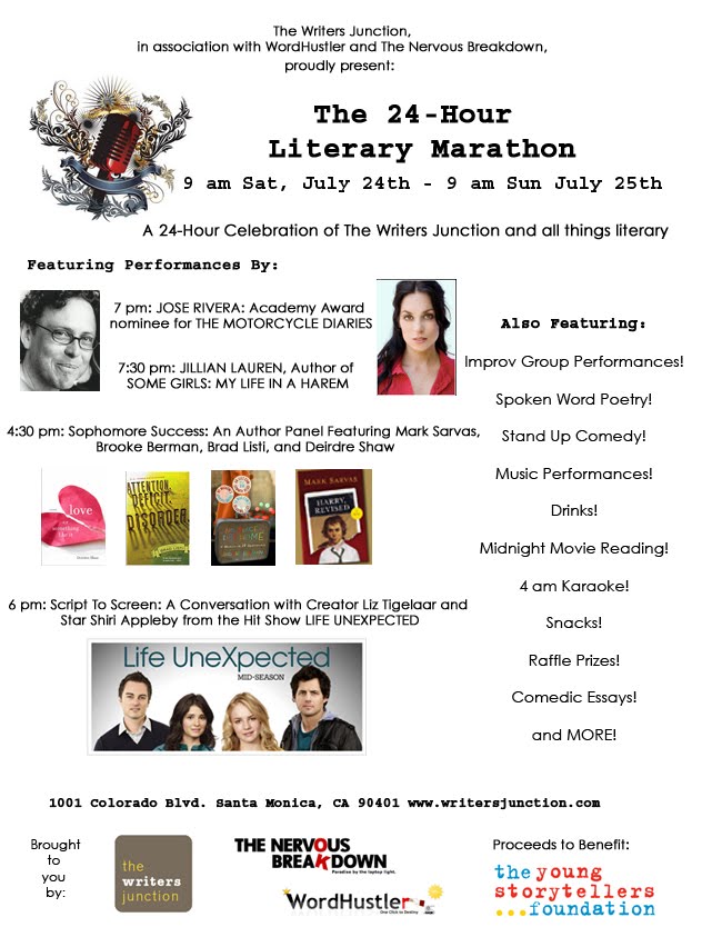 Joseph Mattson, James Greer, Jillian Lauren, Jose Rivera, Mark Sarvas, Brad Listi and MORE will be participating in a 24 HOUR LITERARY MARATHON to benefit The Young Storytellers Foundation, SAT., JULY 24th, 9am to SUN., JULY 25th, 9am! Mattson will be reading at 2:20 AM!