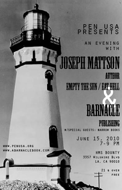 PEN Center USA presents a special event with Joseph Mattson and A Barnacle Book with special guests Narrow Books!