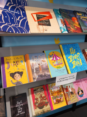 Spotlight image: Ukrainian children’s books at the Ukrainian publishers’ stand at the Bologna Children’s Book Fair.