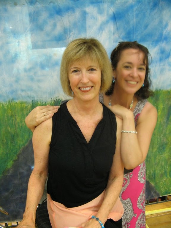 Debbie Gonzales & Shana Burg chat at the refreshments table.