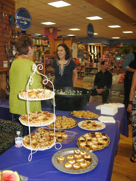 Debbie Gonzales & Shana Burg chat at the refreshments table.